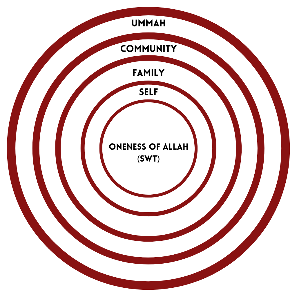 To simplify the Islamic worldview is to analyse a multi-layered, interconnected sphere, with tawheed, the Oneness of Allah ﷻ , as the nucleus. As we actualise our purpose and responsibilities as khulafa’ (vicegerents) on earth, the various levels form expanding layers. Once the greatness of the personal project of every Muslim and the Islamic religion as a whole is comprehended, the importance of creating frameworks to fulfil every aspect of this mission becomes a primary concern so that Muslims may flourish.